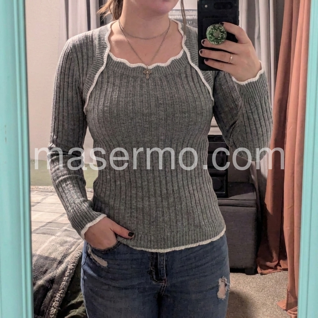 Stay cozy and stylish with our Grey Square Neck Long Sleeve Sweater. Made with high quality materials, this classic sweater offers a snug fit and an elegant square neckline. Enjoy the warmth and comfort of long sleeves, while looking effortlessly chic. Perfect for any occasion, this sweater is a must-have for your wardrobe.