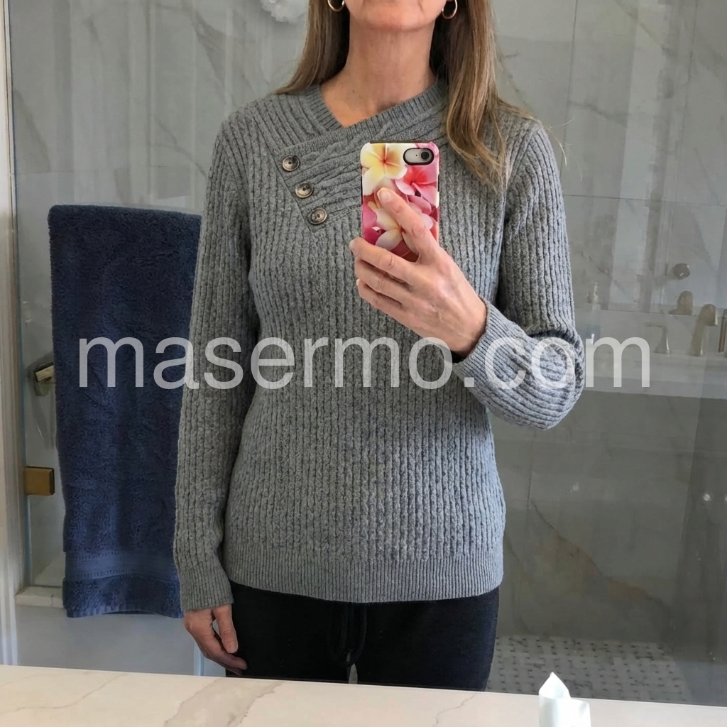 This versatile grey v-neck sweater delivers timeless sophistication with its refined knit construction. The long sleeves and classic v-neckline create a flattering silhouette suitable for layering or wearing solo. Crafted from quality knit fabric, it offers comfortable everyday wear while maintaining a polished appearance. Perfect for building a capsule wardrobe, this essential piece transitions seamlessly from casual to professional settings. The neutral grey tone pairs effortlessly with virtually any bottoms or outerwear in your collection.