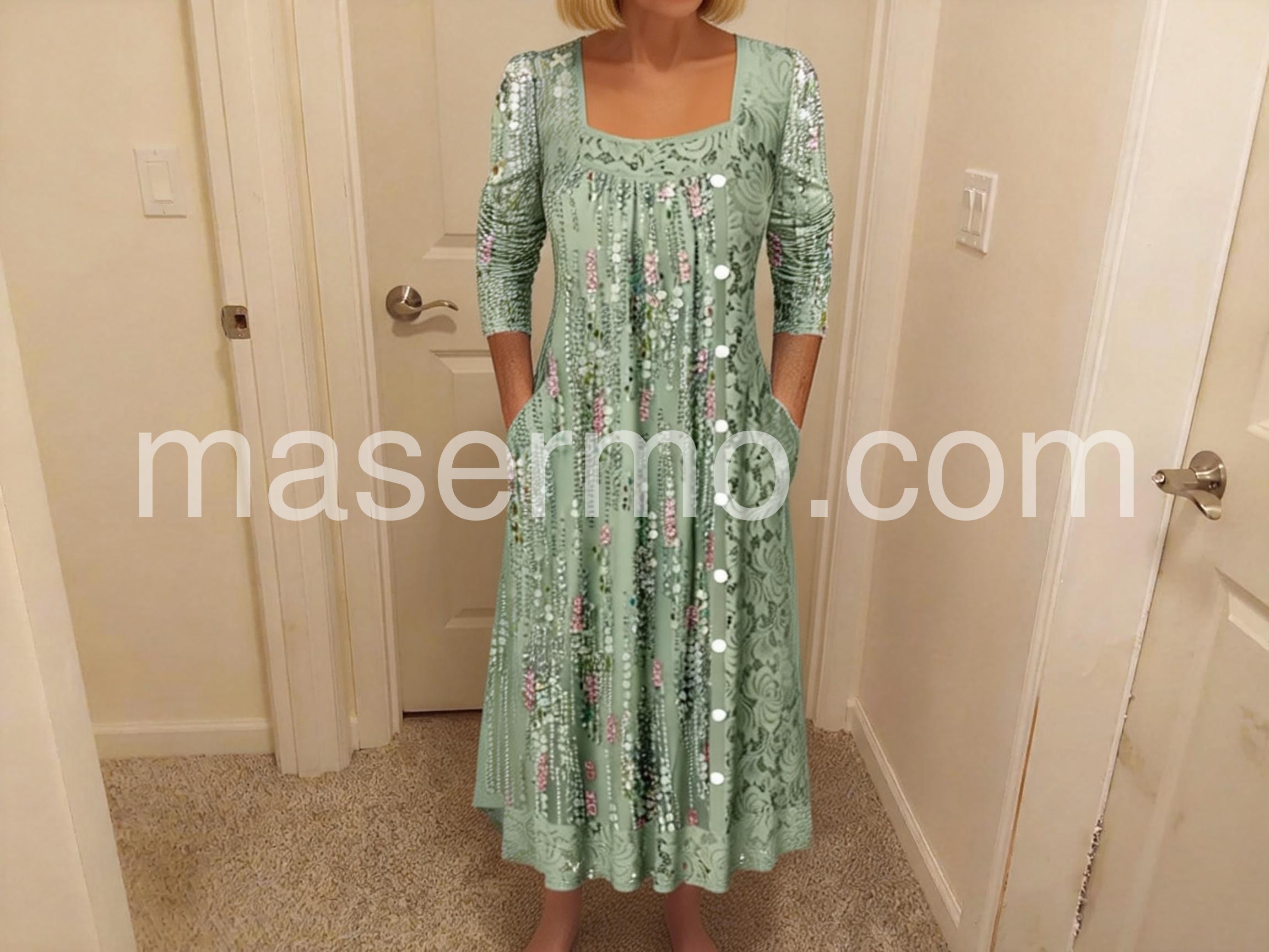 Imagine effortless elegance that turns heads at every glance. This fresh green midi dress captures modern sophistication with its architectural square neckline that frames the collarbone beautifully, paired with graceful long sleeves for refined polish. The A-line silhouette flows with understated grace, while the luxurious rayon-elastane blend moves like silk against your skin—stretchy enough for all-day comfort, yet structured enough to maintain its impeccable shape. Practical side pockets add a touch of everyday luxury, while the midi length strikes the perfect balance between timeless and contemporary. Whether you're navigating the office, attending weekend brunches, or stepping into evening plans, this dress adapts seamlessly to your lifestyle. Machine washable for effortless care. Discover the dress that makes you feel as good as you look.