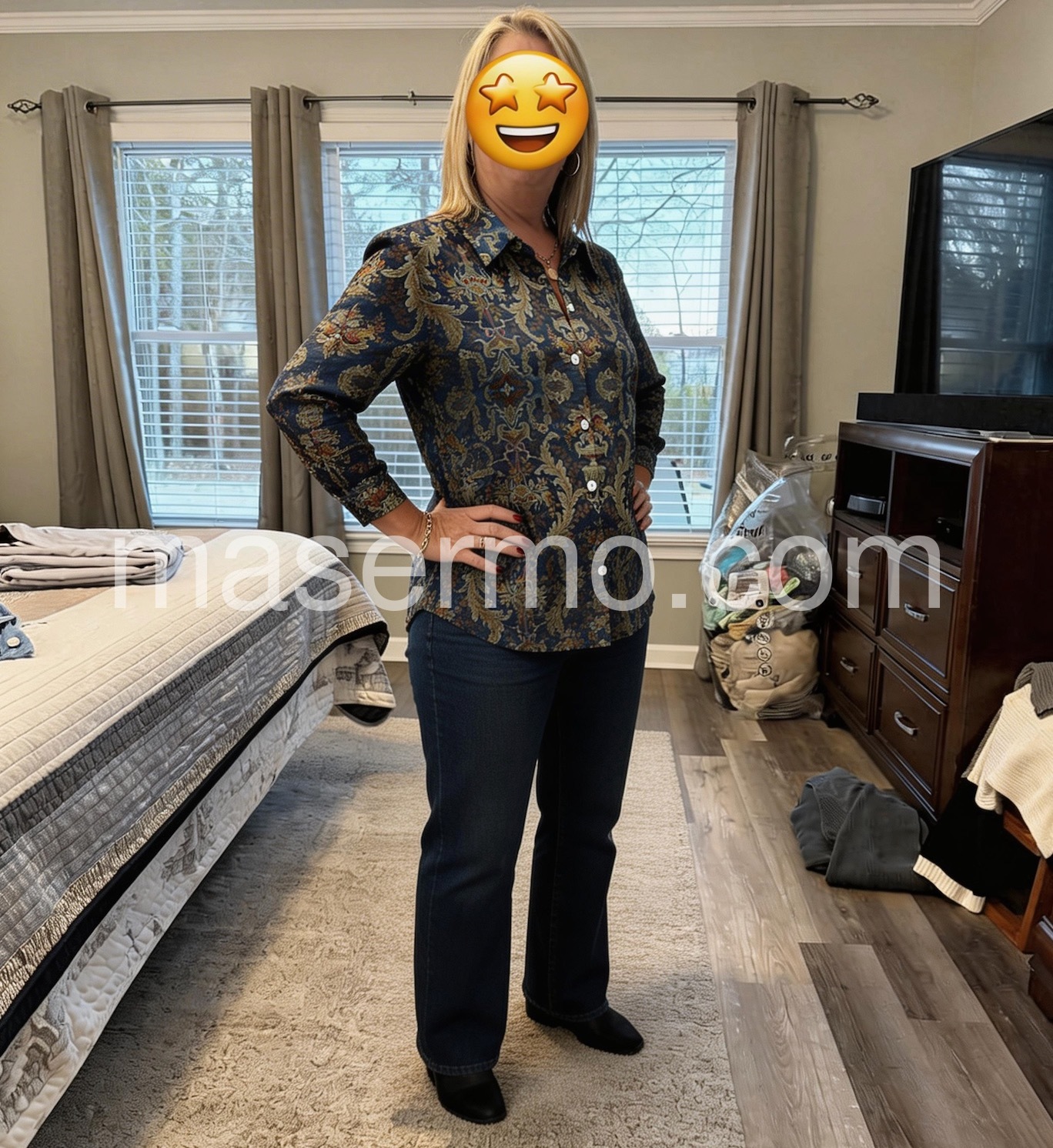 - Neckline: Collared