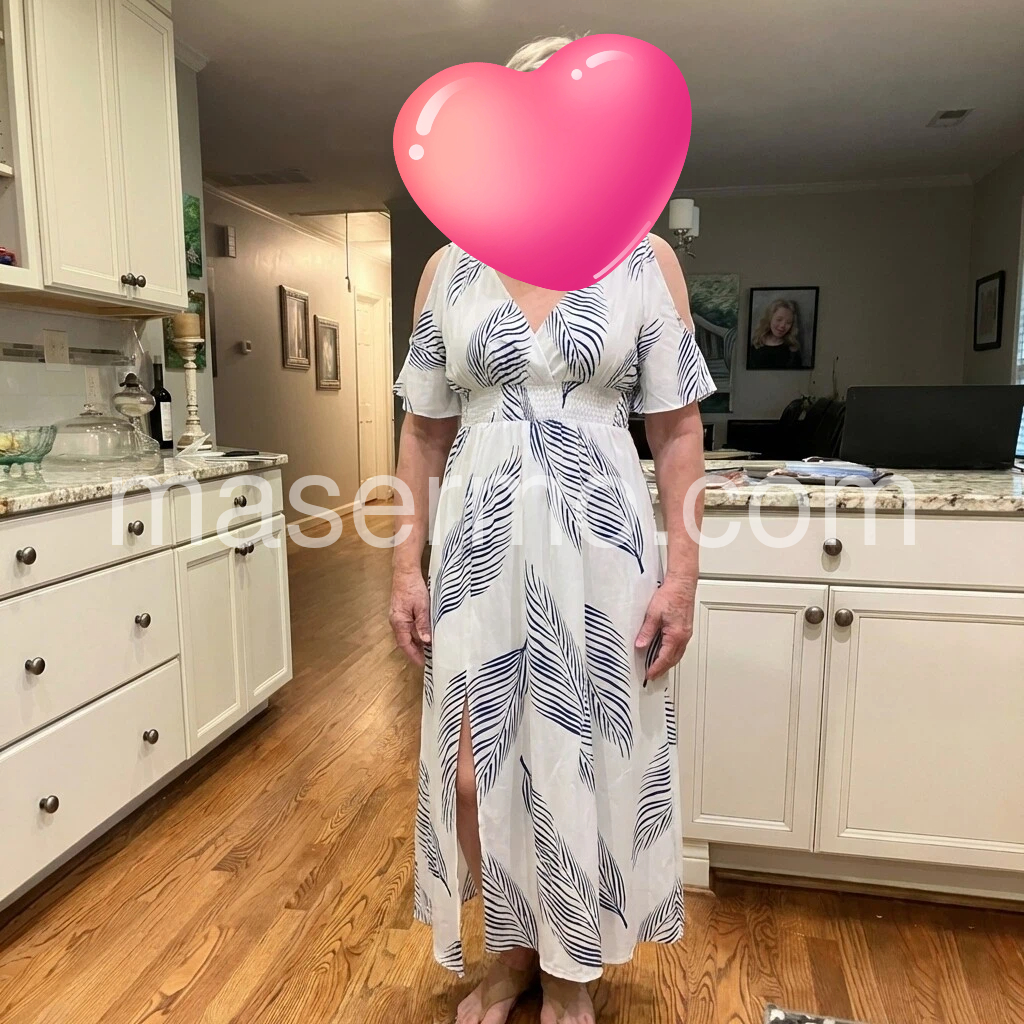 Stunning leaf-print maxi dress—lightweight, flowy, and effortlessly elegant. The white-and-blue color palette is fresh and versatile, while the flattering A-line cut and adjustable tie waist enhance the silhouette. Perfect for summer days or relaxed evenings. Fabric feels soft and breathable, and the fit runs true to size. Shipped quickly and beautifully packaged. A standout piece—I love it!
