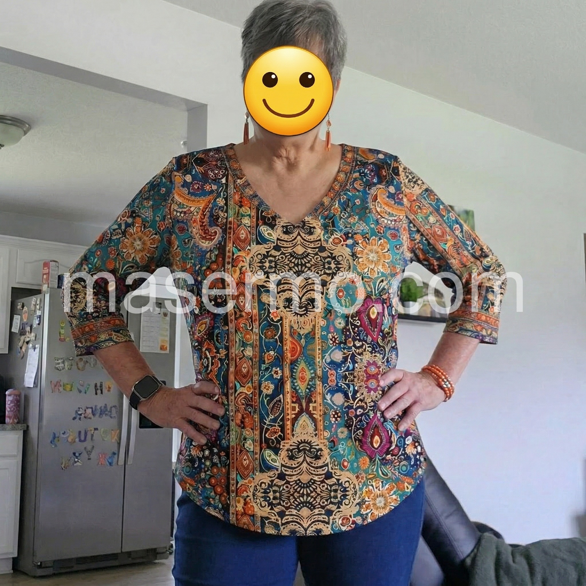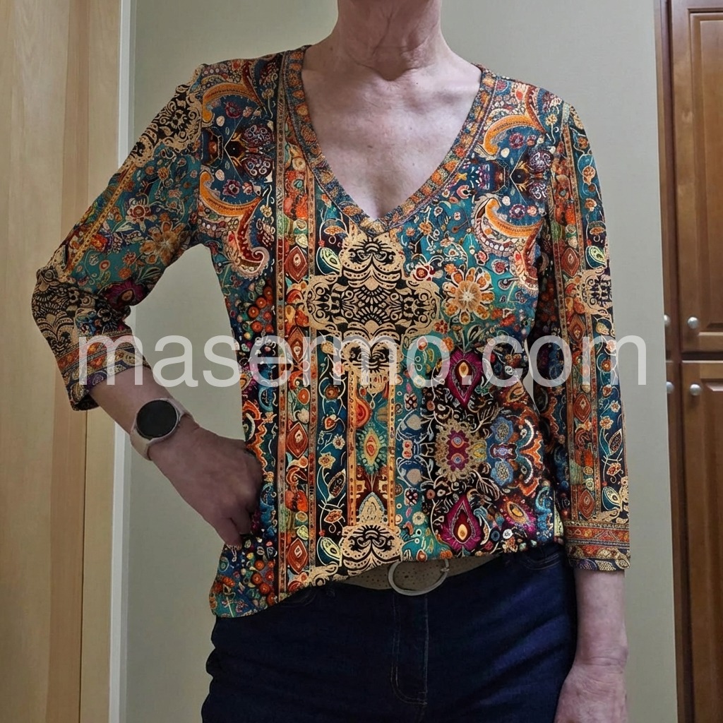 Boho-Style Printed 3/4 Sleeve Top