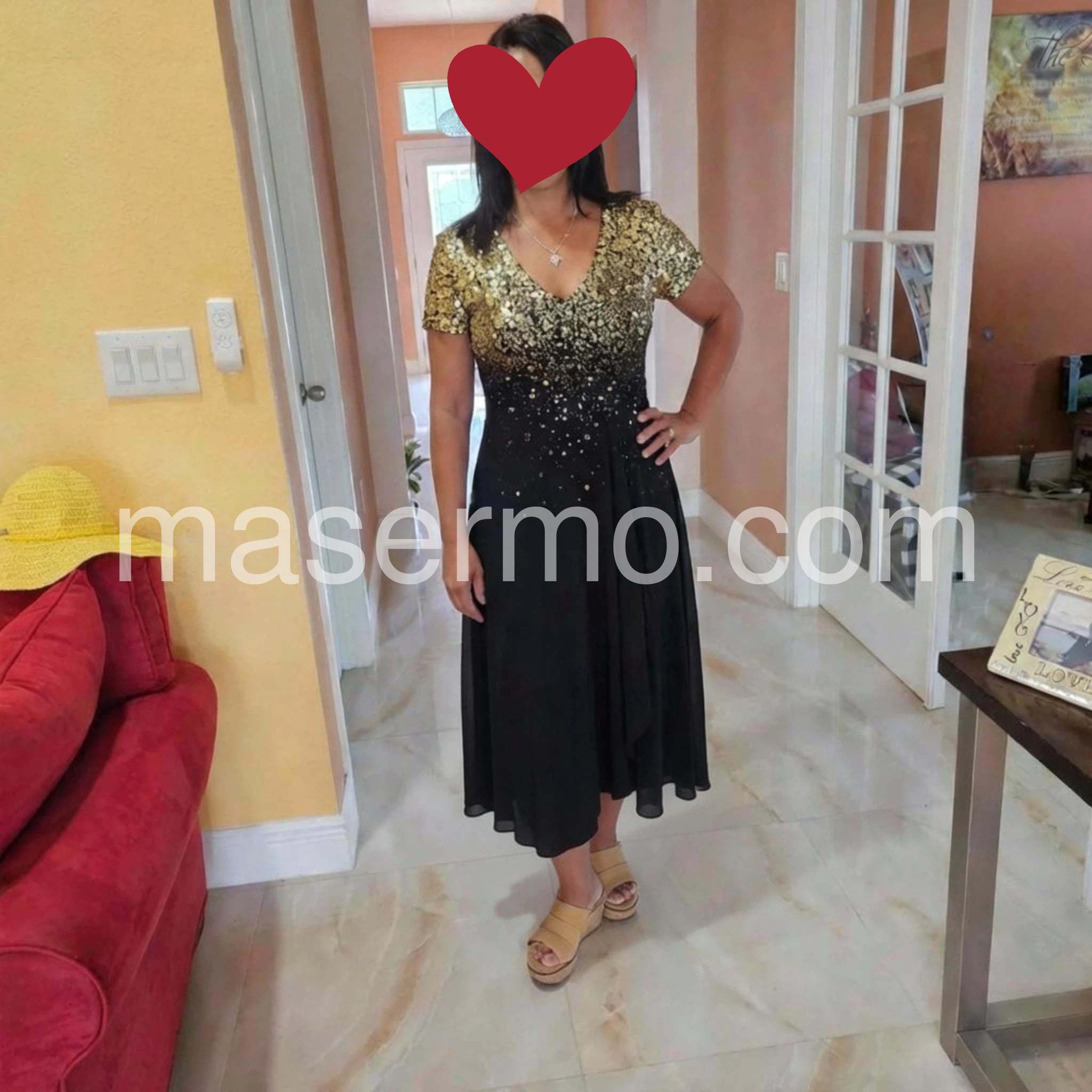 This elegant V-neck midi dress combines sophisticated design with practical comfort. The short sleeves offer versatility for various occasions, while the flattering V-neckline enhances your neckline. The midi length provides a balanced silhouette suitable for both professional settings and social gatherings. Crafted with attention to detail, this stunning dress will become a cornerstone piece in your wardrobe rotation.