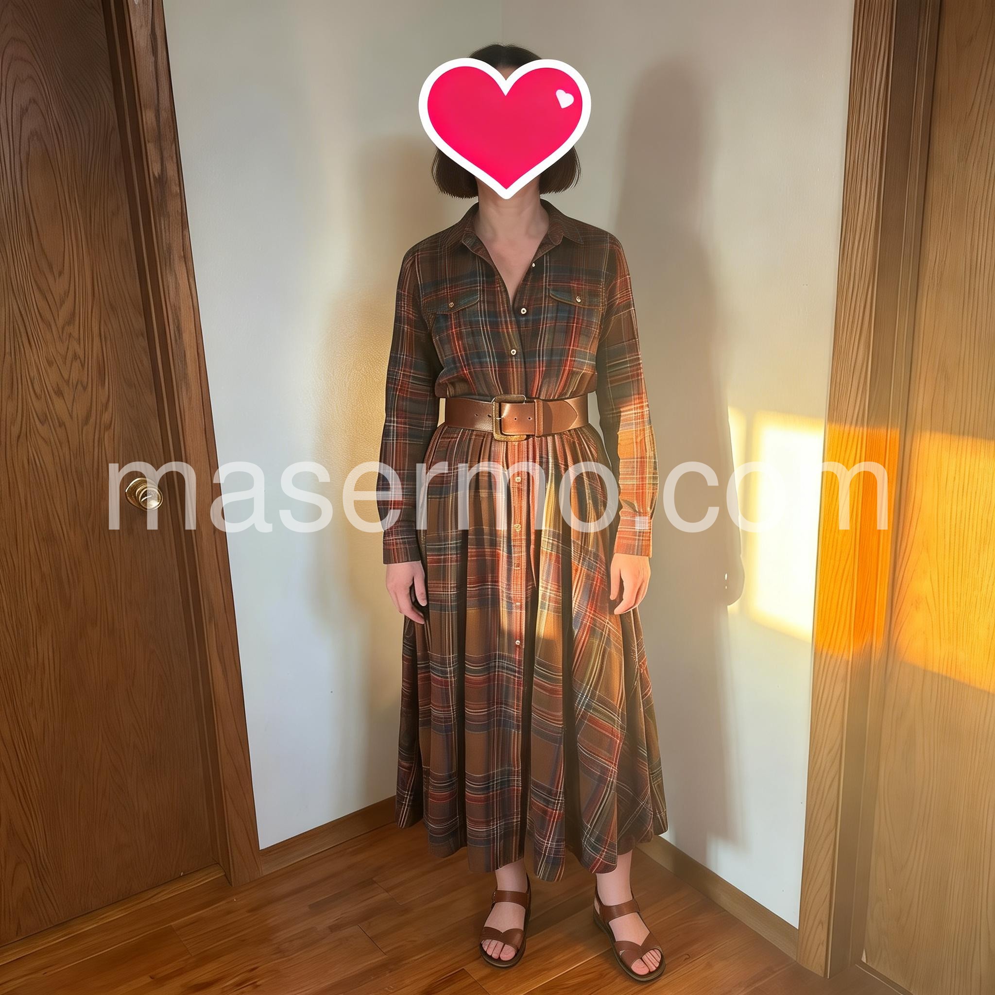 Trendy Check Maxi Shirt Dress With High Slit