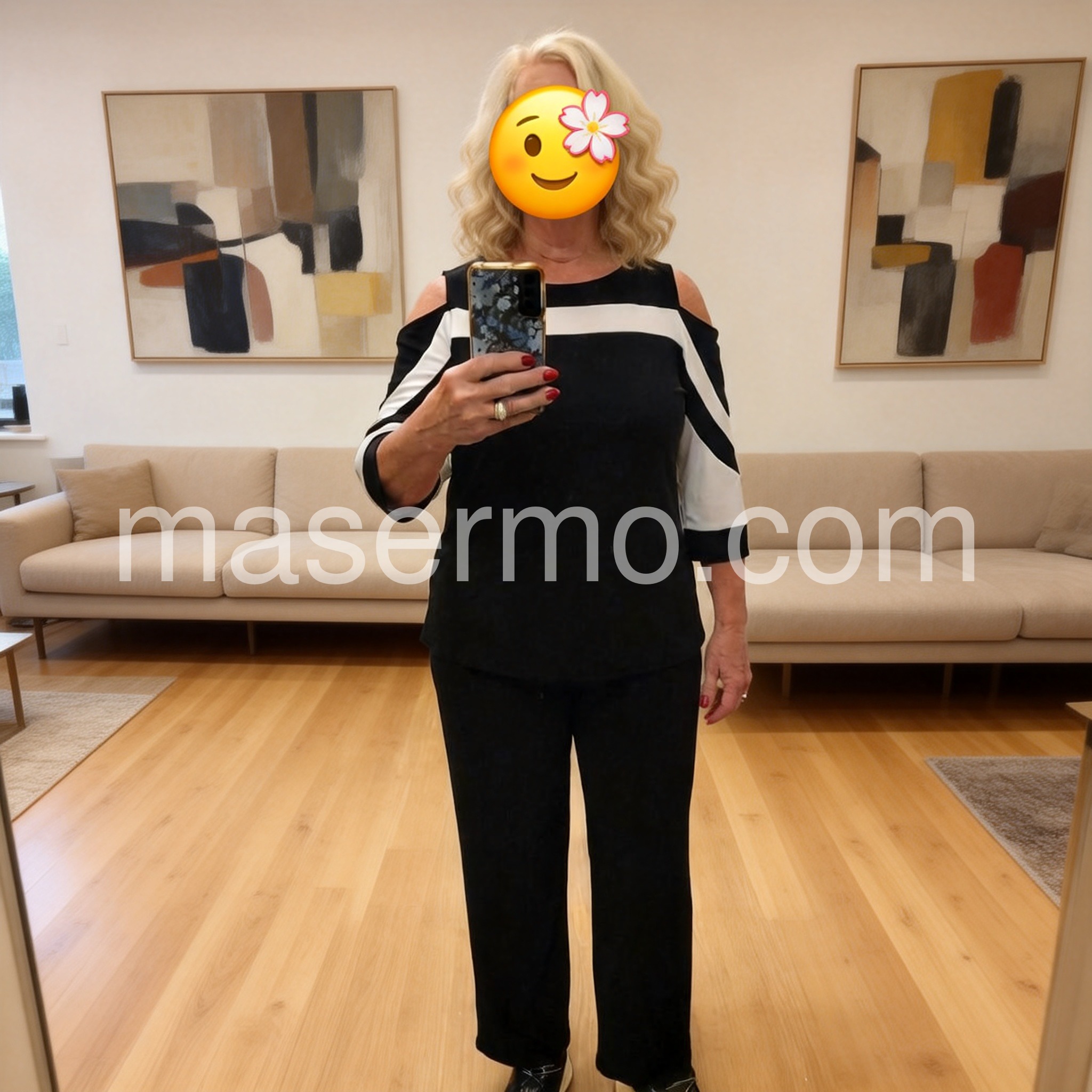 Stay on trend with this trendy round neck color block two piece set. The vibrant color blocking creates a stylish look, while the round neck adds a touch of elegance. Made with high-quality materials, this set is both fashionable and comfortable. Perfect for a casual day out or a night on the town.