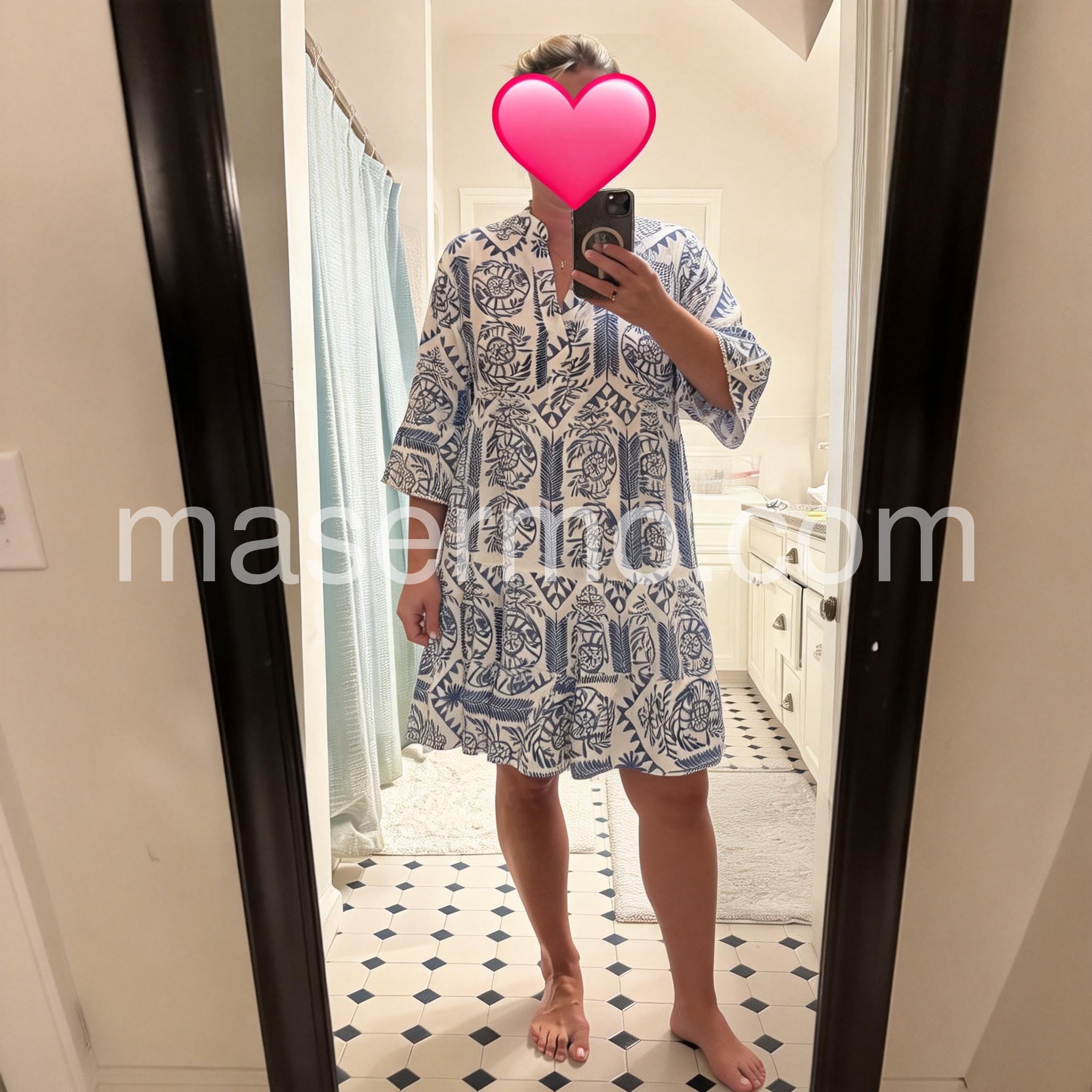 Blue V-Neck 3/4 Sleeve Mini Dress