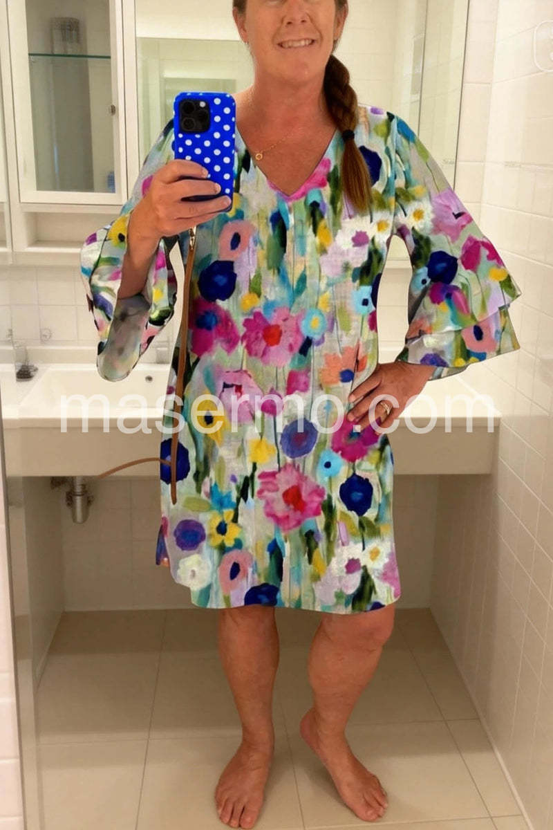 Romantic Floral Print V-Neck Mini Dress